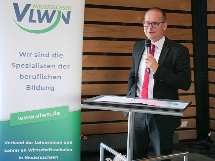 Die unbekannte Variable, mit der die berufliche Bildung heute stärker denn je zu kämpfen habe, ist: „Die Schülerinnen und Schüler fit zu machen für Herausforderungen, die als solche noch gar nicht erkennbar sind. Letztlich ist das eine gesellschaftliche Aufgabe, dies zu meistern. Ich bin froh und dankbar, mit dem VLWN einen guten Austausch zu pflegen und einen kompetenten Partner zu haben, mit dem es sich lohnt, in der Sache zu streiten, um die berufliche Bildung weiterhin zukunftssicher aufzustellen. Der nächste logische Schritt sind da die multiprofessionellen Teams“, sagte Tonne.