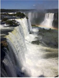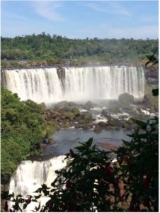 Der Wasserfall mit einer imposanten Höhe von 80 m war schon beachtlich. Ebenfalls haben sich die 1500 m Fußweg zum zweiten Teil der Fälle gelohnt. Um die einzige Nacht in einem modernen brasilianischen Hotel zu verbringen, mussten wir den Bus zur Einreise in Iguazu (jetzt brasilianisch mit z) kurz verlassen. Die Nacht verbrachten wir im Wyndham Hotel.