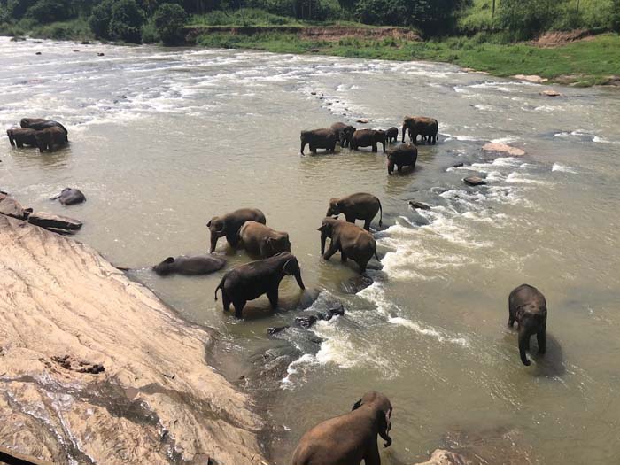 Hier werden kleine Elefanten ohne Muttertiere aufgezogen. Oft werden verwaiste Jungtiere von Wildhütern aufgefunden und in das Waisenhaus gebracht. Als Herde leben meist 70 bis 80 Elefanten zusammen. Wir fahren durch eine atemberaubende, grüne Landschaft aus Teehügeln, Reisfeldern und Wäldern und erreichen das Dorf Ridigama.