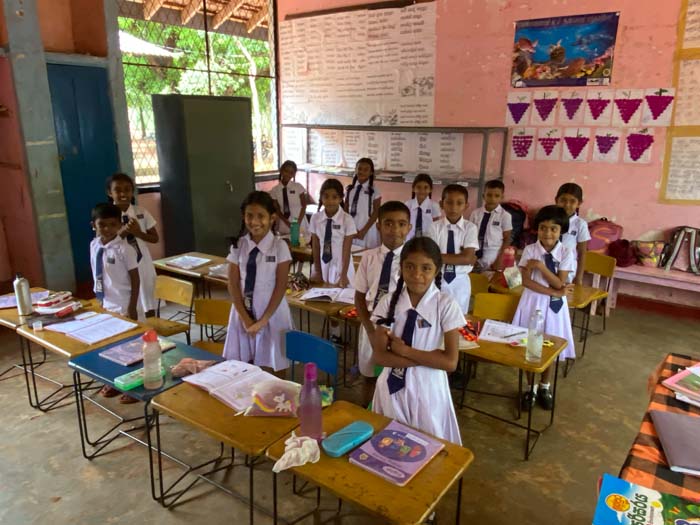 Die Besichtigung einer Dorfschule gab einen kleinen Einblick in die Schulpolitik des Landes. Die Kinder beginnen in der 1. Klasse mit Englisch und mit Singhalesisch, d.h. die Kinder müssen gleichzeitig sowohl arabische wie singhalesische Schriftzeichen lernen. Die Schüler und Schülerinnen tragen eine Schuluniform, und auch für die Besucher gelten Kleidervorschriften.