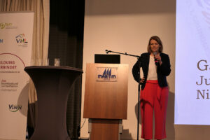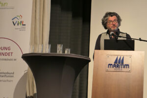 Ulf Jürgensen, Schulleiter der BBS Burgdorf und für den VLWN auf dem Podium, hat ein gutes multiprofessionelles Team an seiner Seite und ist dankbar dafür „Wichtig im Schulalltag ist der regelmäßige Austausch im Kollegium, um entstehende Probleme frühzeitig zu erkennen und entgegenwirken zu können, bevor sie aufpoppen.“, sagte Jürgensen, der vor Jahren präventiv gemeinsam mit der Schulsozialarbeit an seiner Schule ein Projekt aufgesetzt hat, das mittlerweile den Namen „CrimeEX“ trägt. Dabei kommen Straftäter auf Freigang in die Schule und zeigen angehenden „Systemsprengern“ auf, was die Konsequenz ist, wenn man im Leben falsch abbiegt. „Im Gegenzug besuchen die Schülerinnen und Schüler die Straftäter für einen Tag im Knast. Das sind prägende Erfahrungen, die die Bereitschaft, sich auf demokratischen Boden zu bewegen, schürt“, sagte Jürgensen.