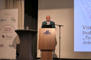 Ein denkbares Ergebnis, für das es nur eine Initialzündung wie einen Bombenanschlag bedarf, das Julia Willie Hamburg aber nicht kommentieren wollte. Stattdessen sagte die Kultusministerin in ihrem Grußwort: „Gewaltfaktoren und Demokratiebildung muss man gemeinsam denken, weil sie ohnehin zusammengehören. Dass Sie als Lehrerverbände dieses gesellschaftlich relevante Thema gemeinsam angehen, ist großartig. Das Ministerium stärkt Ihnen den Rücken, damit Sie an der Front bestehen können – so martialisch muss man es schon formulieren – und wir werden zeitnah den neuen, deutlich verschlankten Gewaltpräventionserlass herausgeben. Es ist richtig, dass Lehrkräfte Fakenews mit fachlicher und sachlicher Aufklärung begegnen. Es ist sogar ihre Beamtenpflicht zu widersprechen, wenn antidemokratische und populistische Parolen die Runde machen.“
